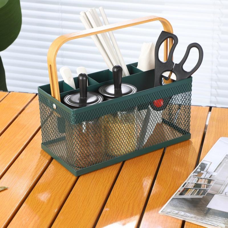2026 Trending Nordic StyleBasket Metal Mesh Wooden 18L Large Capacity Handle Portable Kitchen Storage Fruits Vegetables Home Use