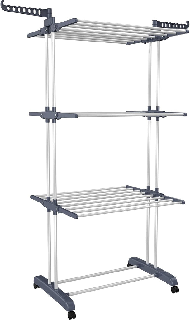 - 【4-TIER Oversized Clothes Drying Rack】: Size: 67.7H x 19.7W x 30L Inches. Oversized 4-tier design and 2 wing hooks for drying towels, socks, clothes, shoes, quilts, etc. There are a total of 24 pillars, 14 hooks on 2 side wings for additional hanging drying. Oversized drying rack for drying up to 62 clothes. There is enough space to dry whole family's clothes.